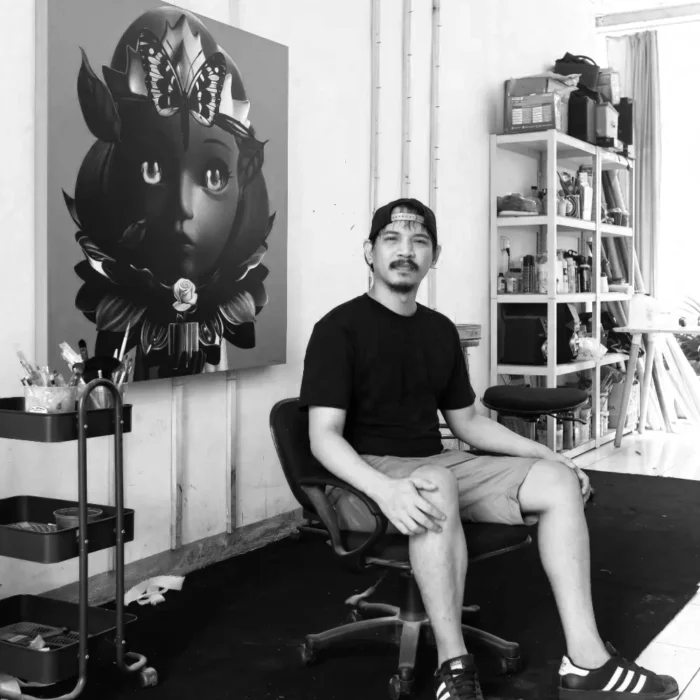 Kadek Marta Dwipayana is a visual artist who places the body at the center of his paintings. The body emerges from layers of brushstrokes that rub against one another, overlap, and press into each other, causing it to appear scattered, piled, and distorted without proportion. These brushstrokes shape the body as a field of pressure, friction, and displacement. The colors, which are prepared by the artist himself, carry a measured intensity that reinforces the tension and structural presence of the body within the paintings.